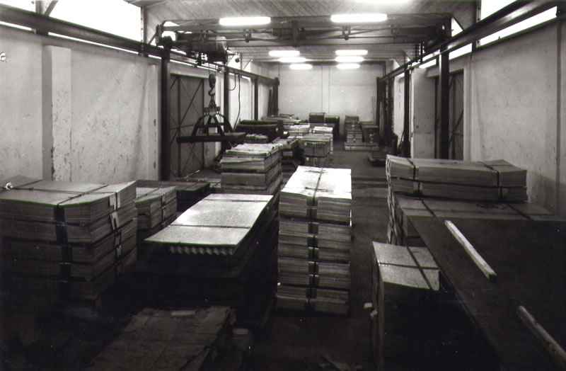 Neben den Transporten von Tafel- und Wellblech gewinnt der Umschlag und die Lagerung einen immer größeren Umfang. Die Kunden - in der Hauptsache Eisen- und Stahlhändler - erwarten sachgemäße Lagerung und einen bedarfsgerechten Zugriff auf ihre eingekauften Blechmengen. Da es sich bei den Einlagerungsmengen zum größten Teil um verzinktes Blech handelt und dieses Material bei zu hoher Luftfeuchtigkeit zu Weißrostschäden neigt, ist der Einbau eines Lufterhitzers notwendig.